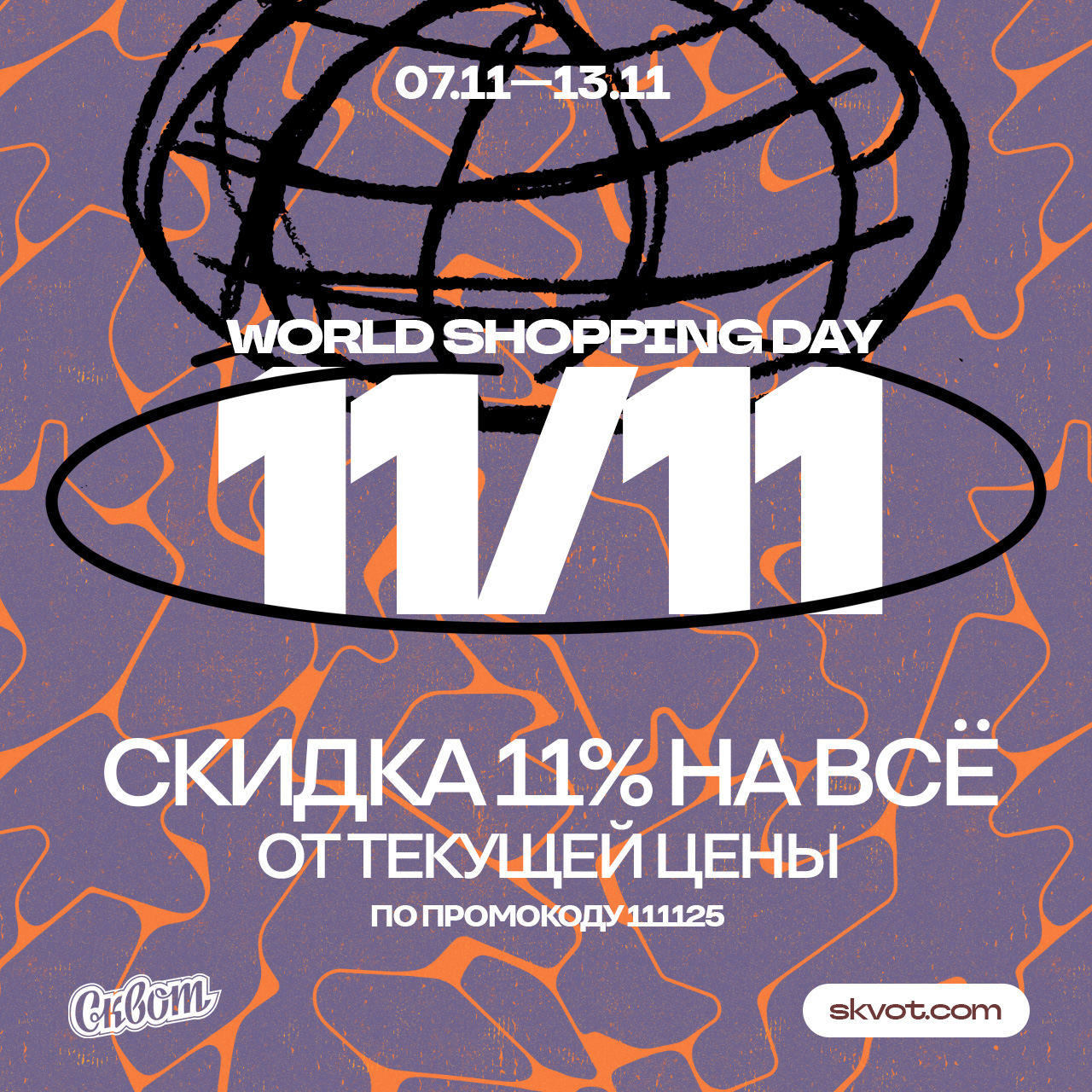 С 7 по 13 ноября вводите промокод 111125 при покупке онлайн или называйте на кассе магазина и получайте глобальную скидку -11% от текущей цены в любом чеке!